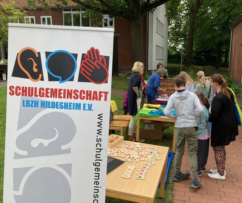 Am 1. Juli fand das Sommerfest am LBZH Hildesheim statt. Auch die Schulgemeinschaft beteiligte sich mit einem Infostand und beim Stoffbeutel bedrucken mit dem Fingeralphabet.